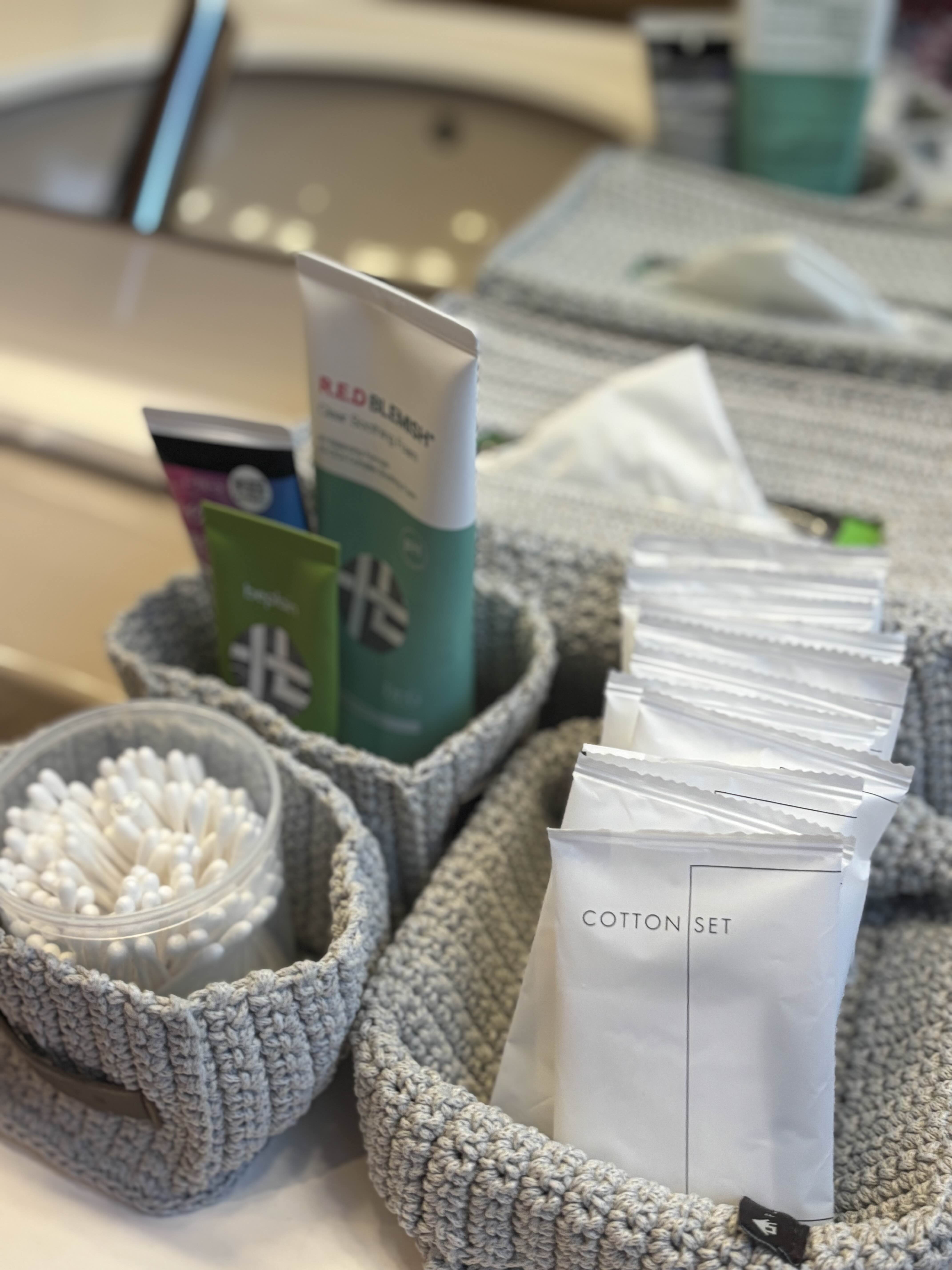 대중탕에 들어가면 간단한 탈의공간에 세면대와 각종 용품들이 있고, 수건은 바디 사이즈 까지는 아니고 얇은 세수용 수건 정도 되는 사이즈로 넉넉히 구비되어 있다. 두 장 정도 썼더니 충분했던 듯. 그리고 비닐봉지 기본으로 구비되어 있어서 젖은 물건 갖고 가기도 좋게 되어있었음.