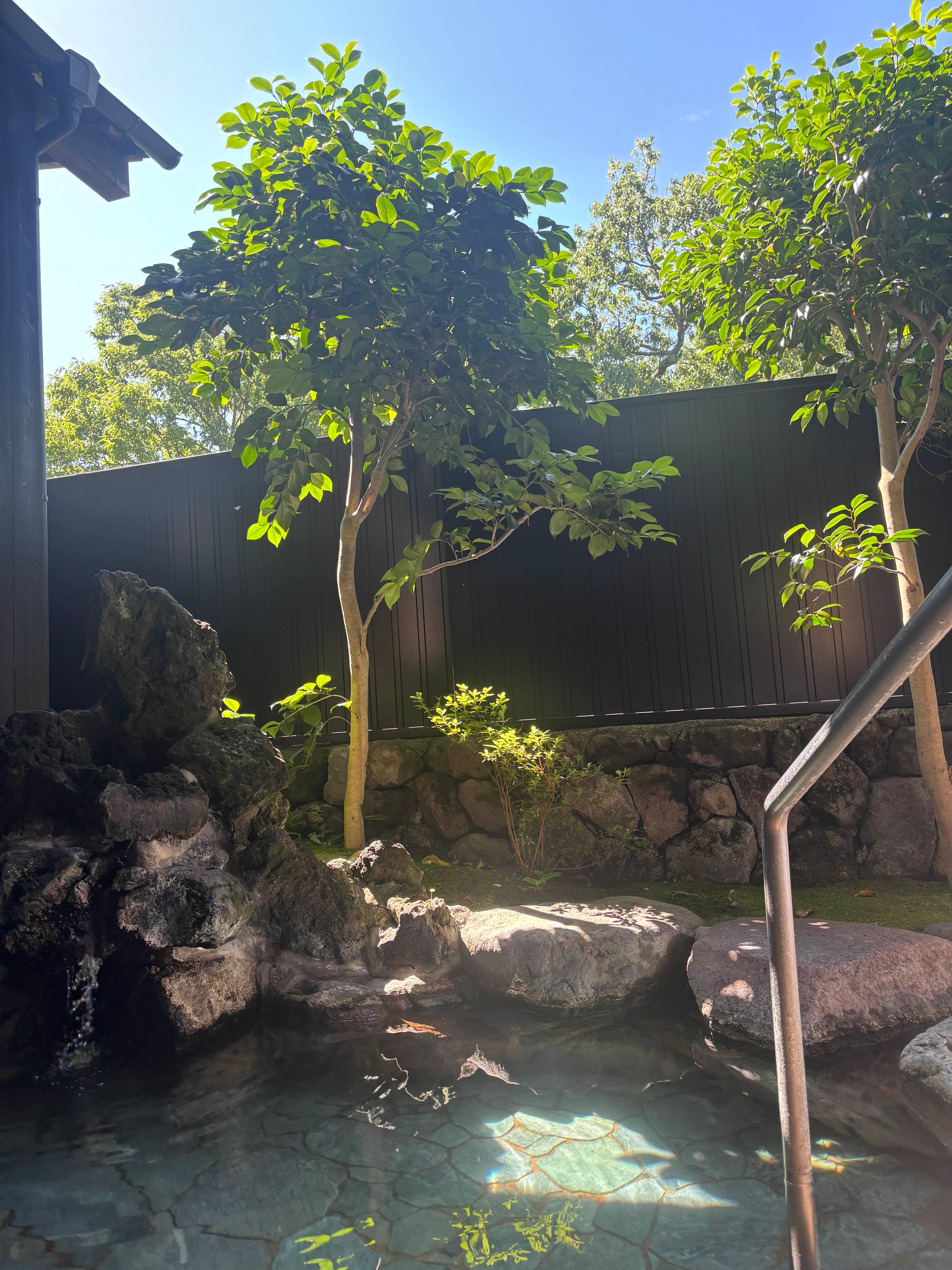 아침에 혼자 1층에 있는 나카 탕으로 안내를 받아 들어갔는데, 일단 밝은 햇살에 수건 먼지 한 올 한 올까지 너무 잘 보이고, 물이 깨끗하긴 한데도 그래도 밤하늘 아래 볼 때보다는 자연 먼지 같은게 많이 보여서 별로. 그리고 밤에는 그래도 뜨끈뜨끈하게 지지는 느낌이었던 것 같은데, 아침에는 뭔가 물도 미지근하고 해서.. 그냥 실내탕에서 헹구고 나오는 느낌으로 마무리 하고 금방 나옴.
