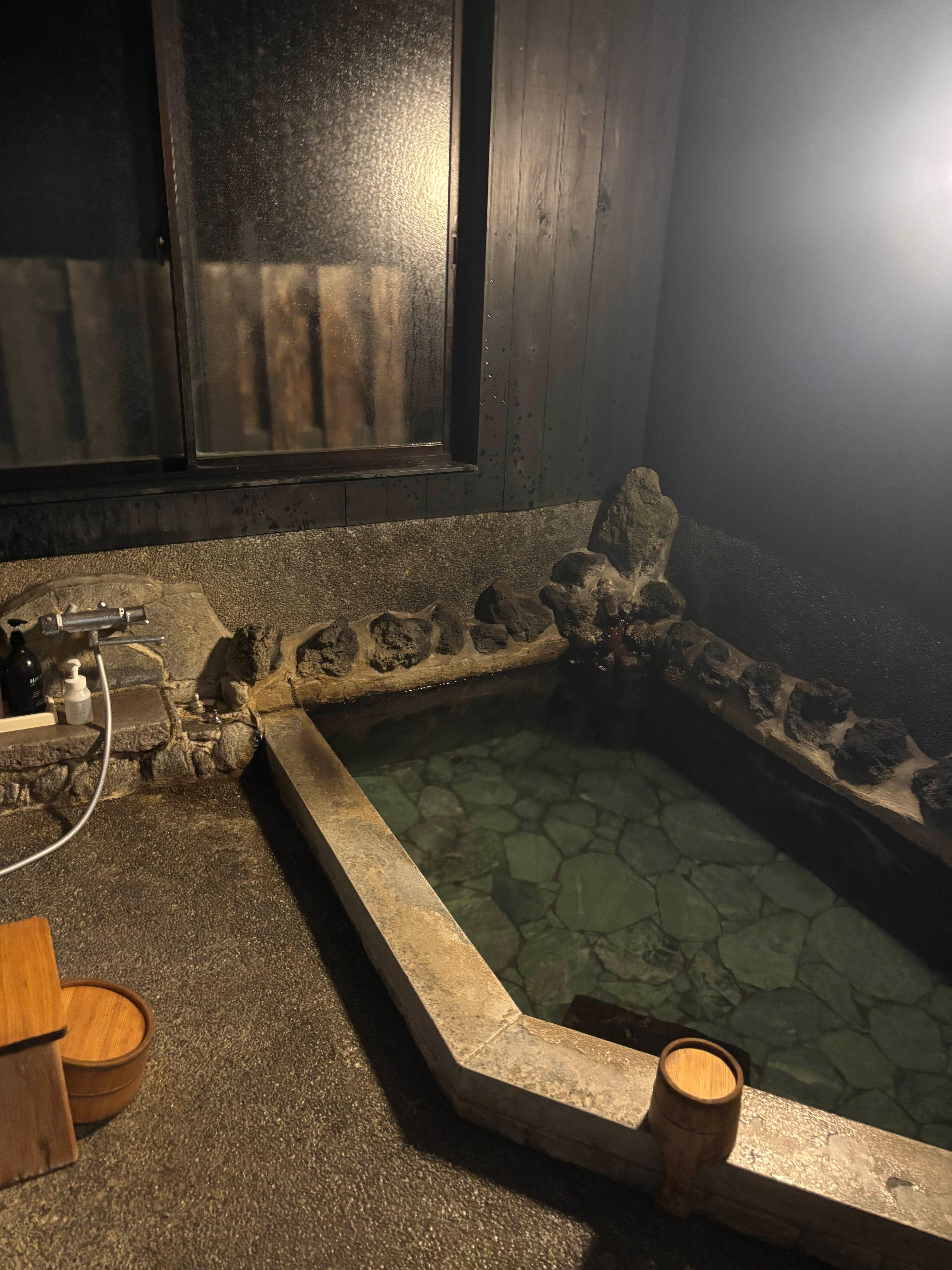 노천탕 분위기도 좋고 물도 좋고 다 너무 좋았는데 어두우니까 머리 위로 아무것도 안 보여서, 다음 날 아침에 목욕 가면 더 좋을 것 같았는데 꼭 그렇지는 않았음.